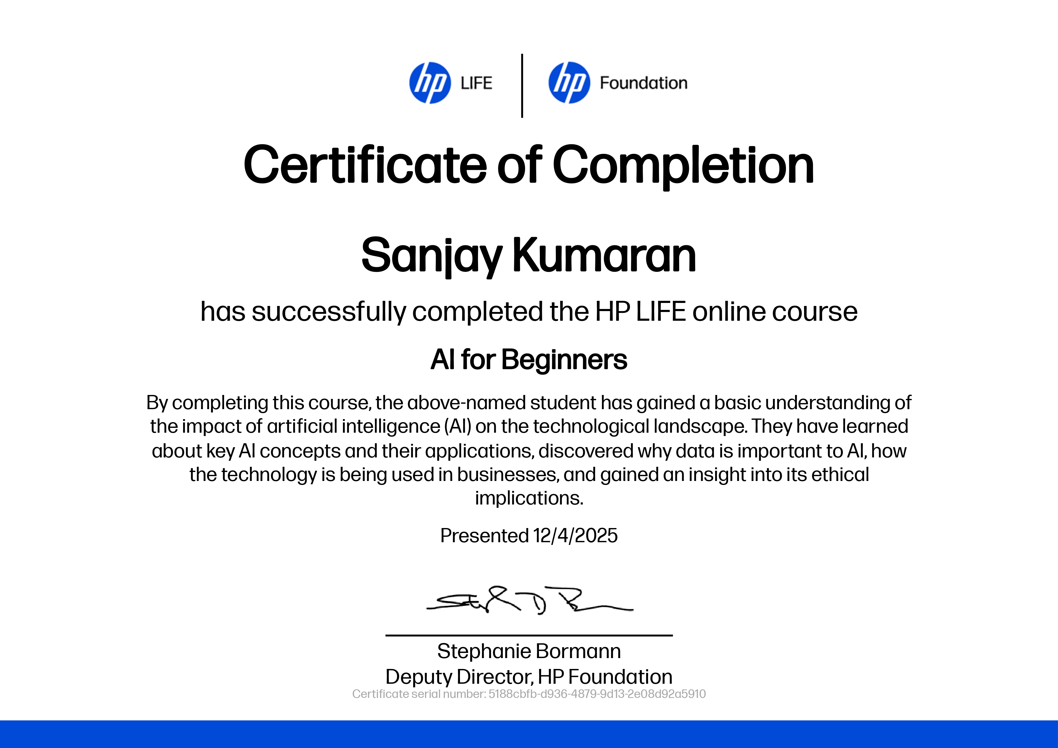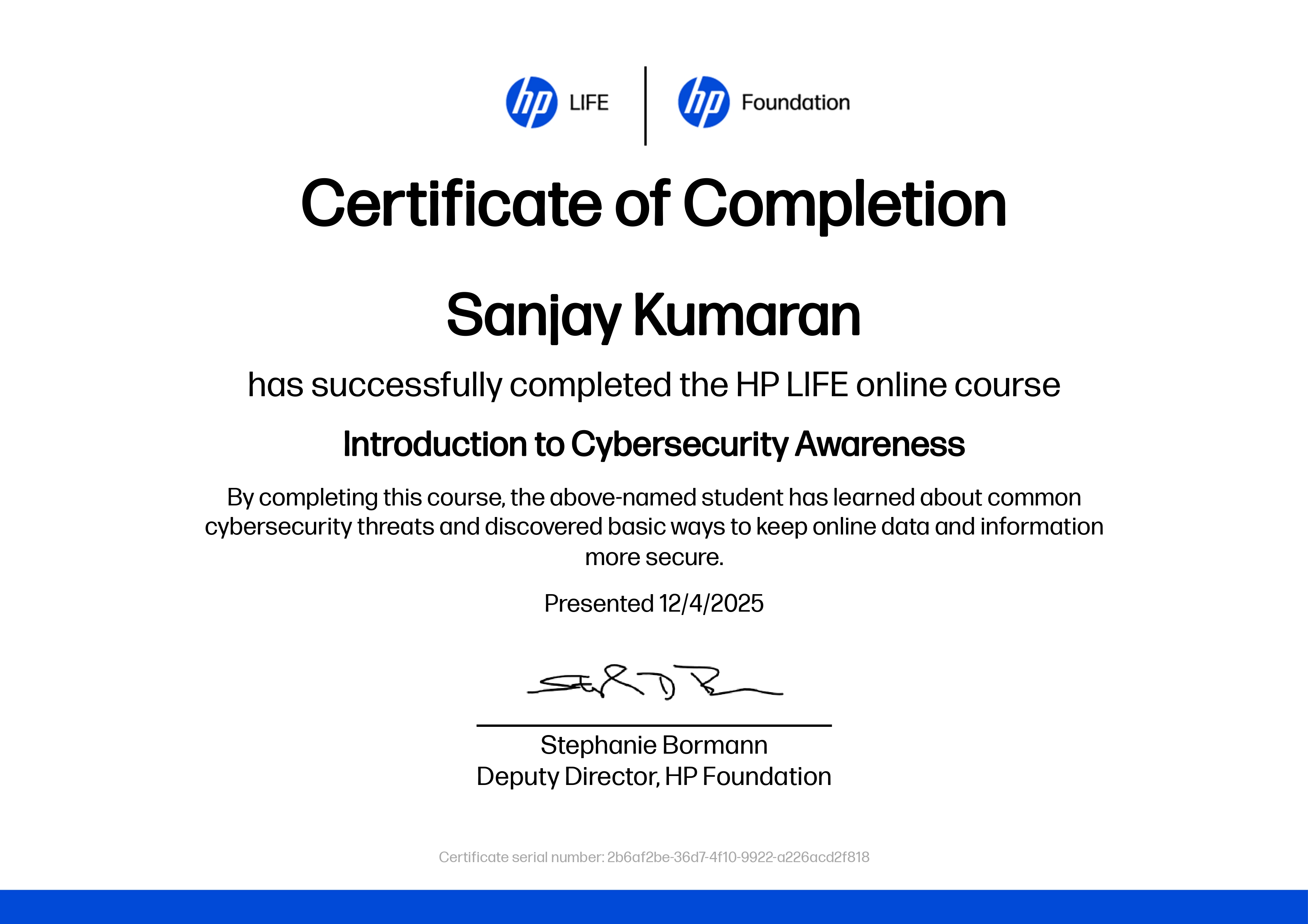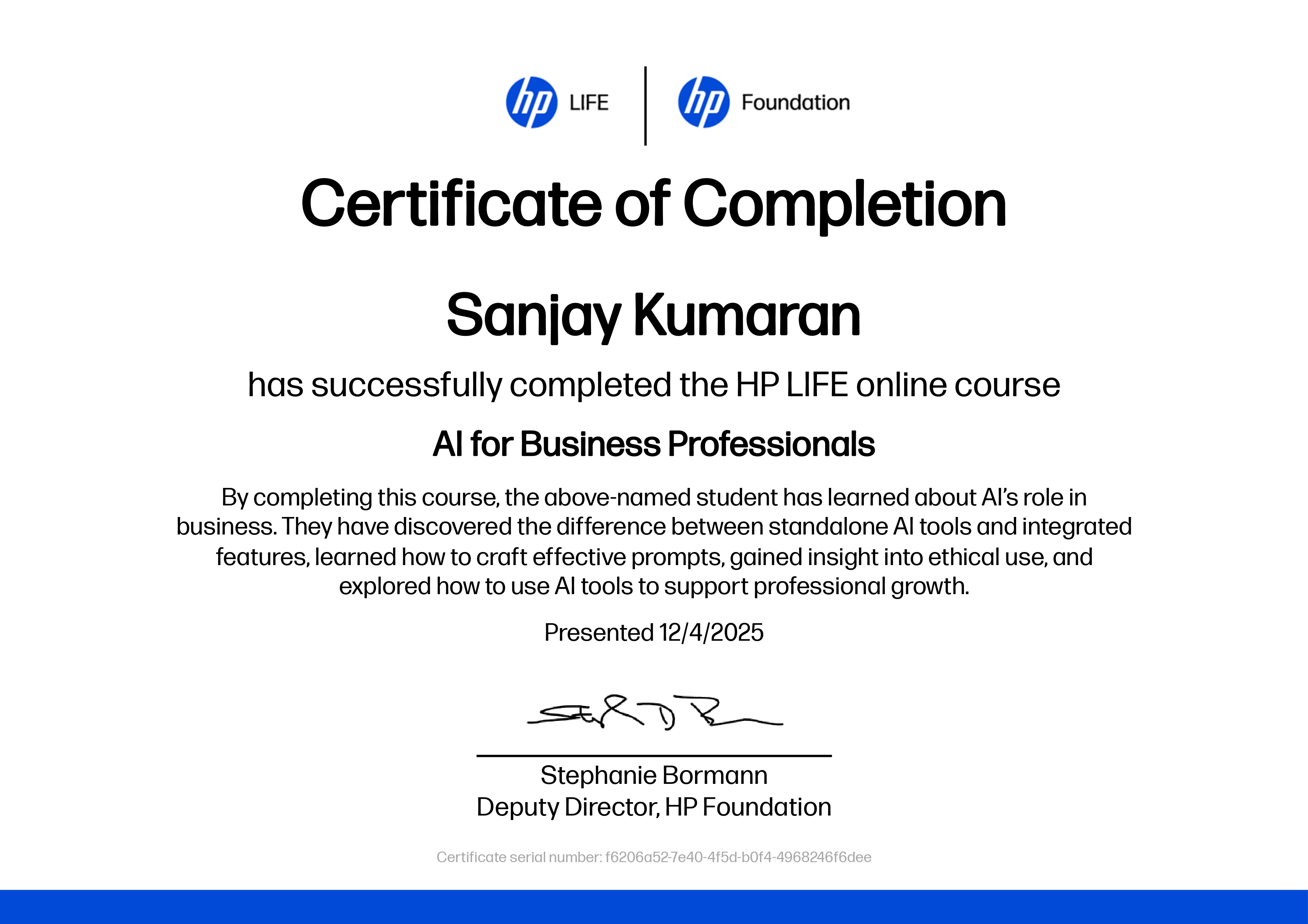 Credential ID: bc1aa0e6-677c-4bae-a397-53a35f4f52d1